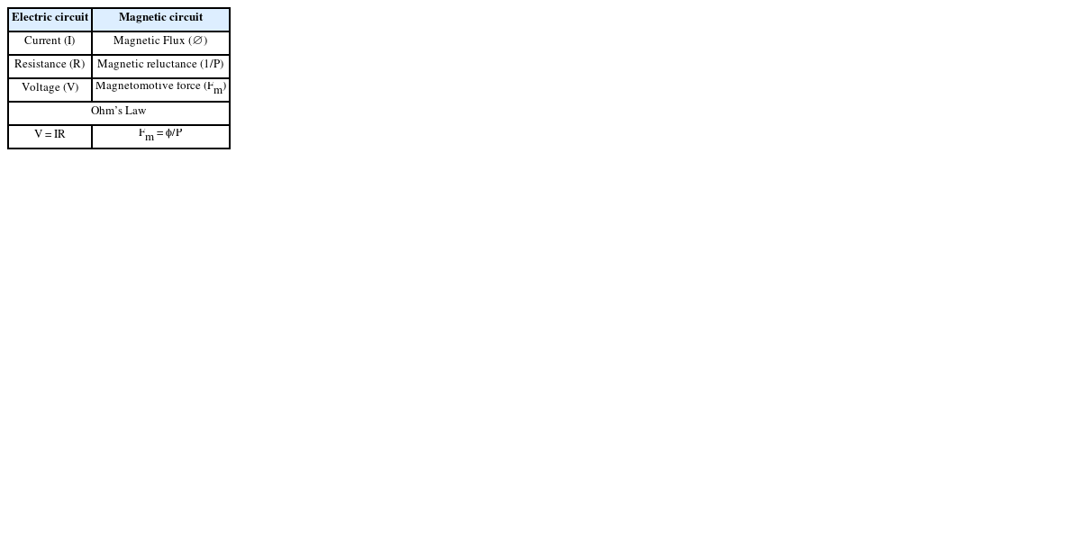 Table 2Analogy between electric and magnetic circuits
