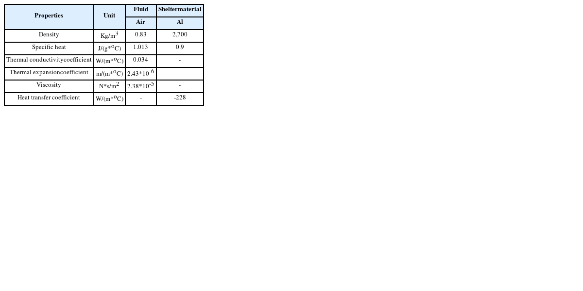 Table 1Heat source & air material properties