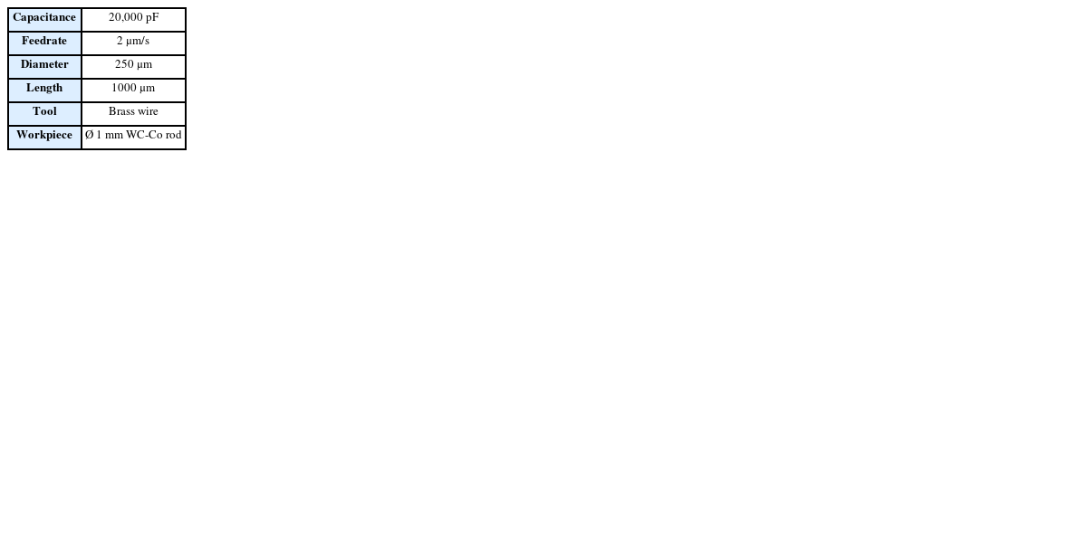 Table 1은 초경 전극 가공을 위한 조건을 나타낸 것이다.