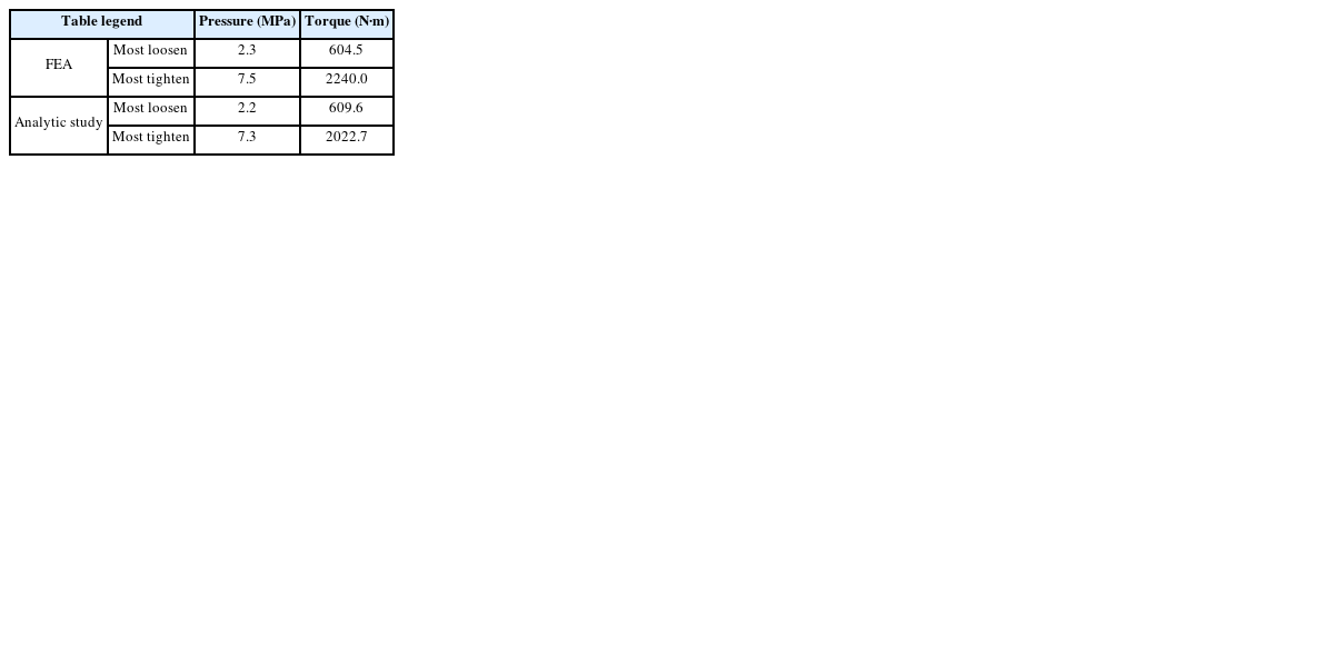 식(1)을 이용하여 이론적으로 구한 접촉압력의 경우에는 최대 간섭량의 경우 2.2 MPa, 최소 간섭량인 경우 7.3 MPa로 FEM 해석과 비교하여 잘 일치하는 것을 알 수 있었다. FEM 해석 및 이론식으로 구한 결과를