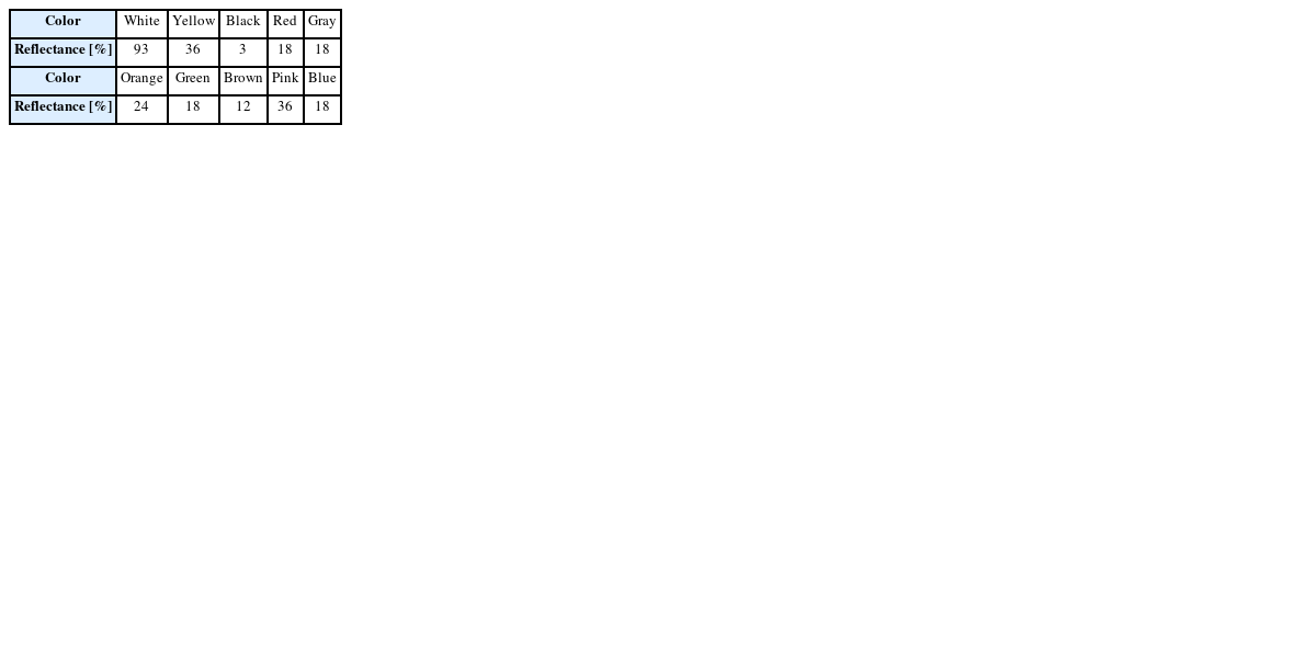 Table 2Reflectance according to reflector color