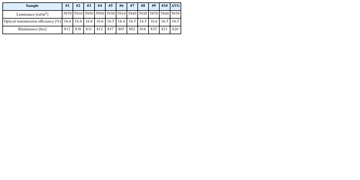 Table 3Luminance according to thickness of light guide