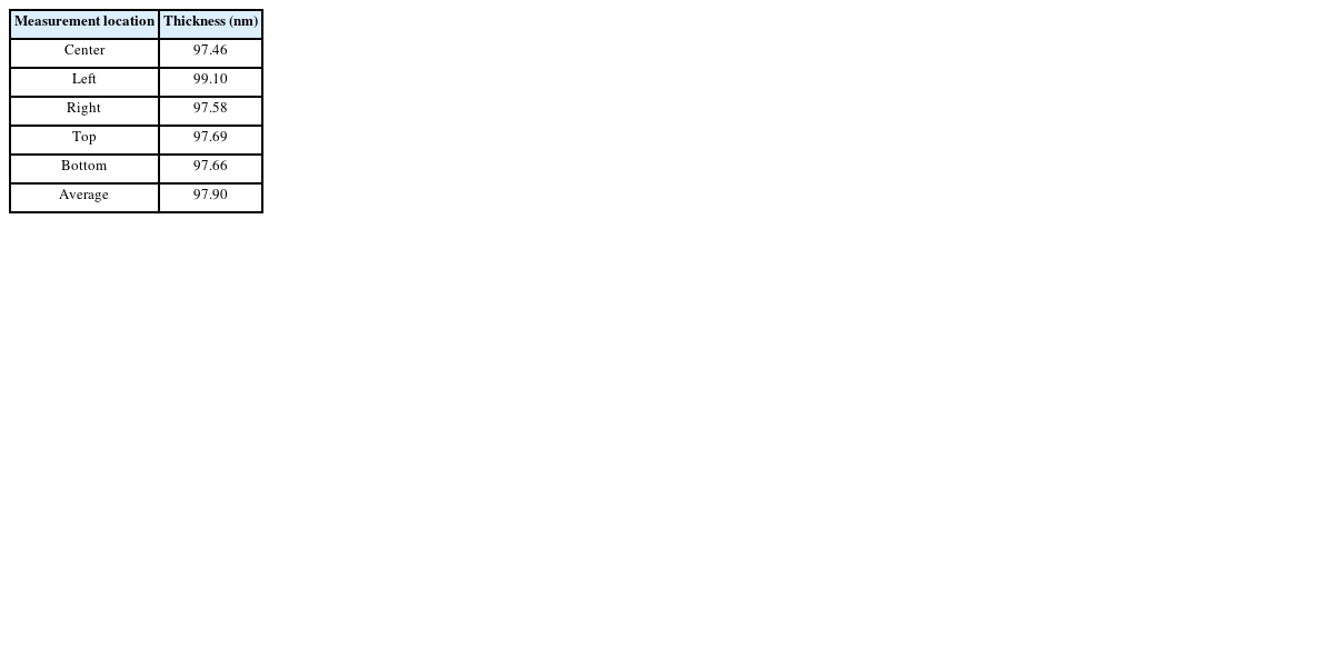 Table 1은 측정 결과를 보여주며, 그 평균값이 97.9 nm임을 확인할 수 있다.