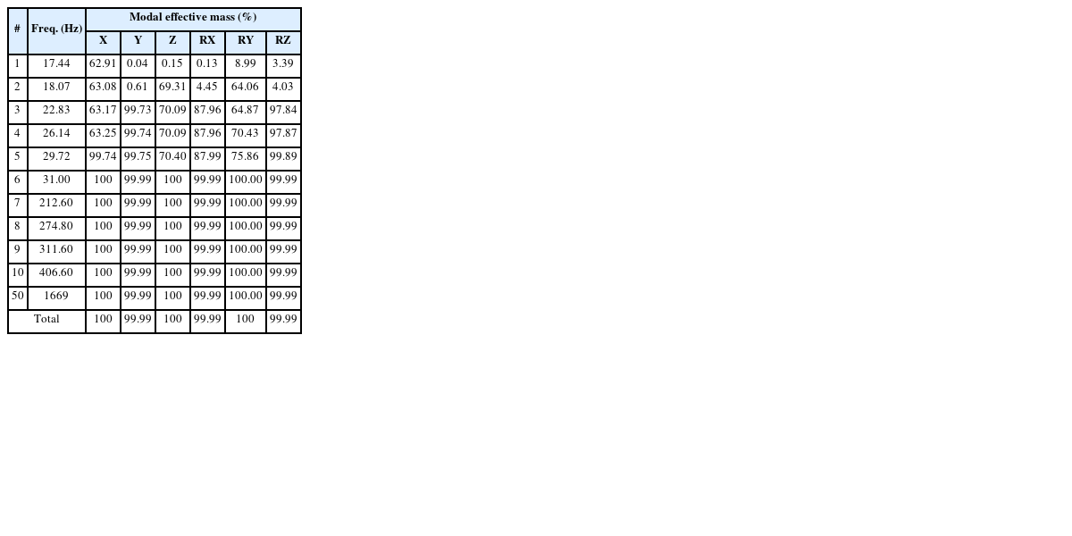 Table 2Total effective mass for mounting equipment with isolator by simulation