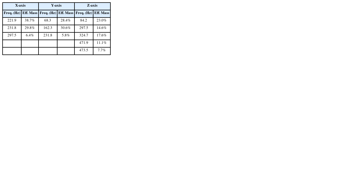 Modal Analysis에서 얻은 고유진동수와 Ansys Harmonic Analysis를 통해 얻은 POD 구조체의 축 별 FRF를
