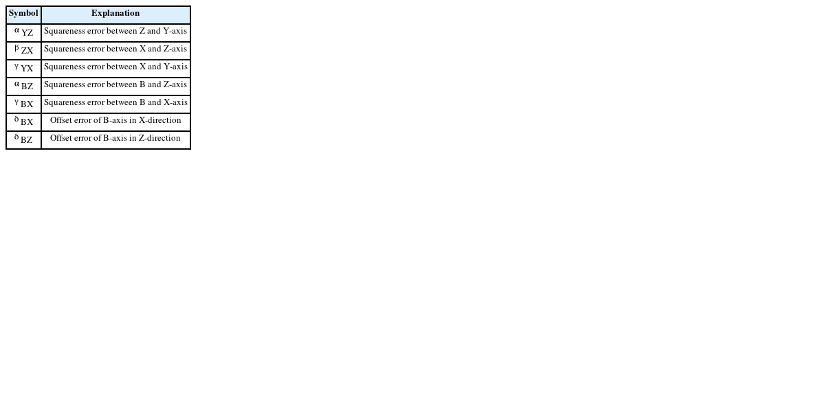 Table 1에 정리하였다. 여기서, 직각도 오차의 기호는 회전 중심축에 따라 각각