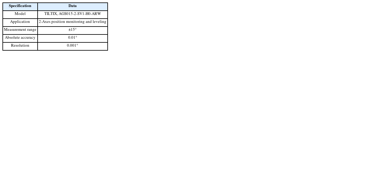 Table 2Inclinometer general specification