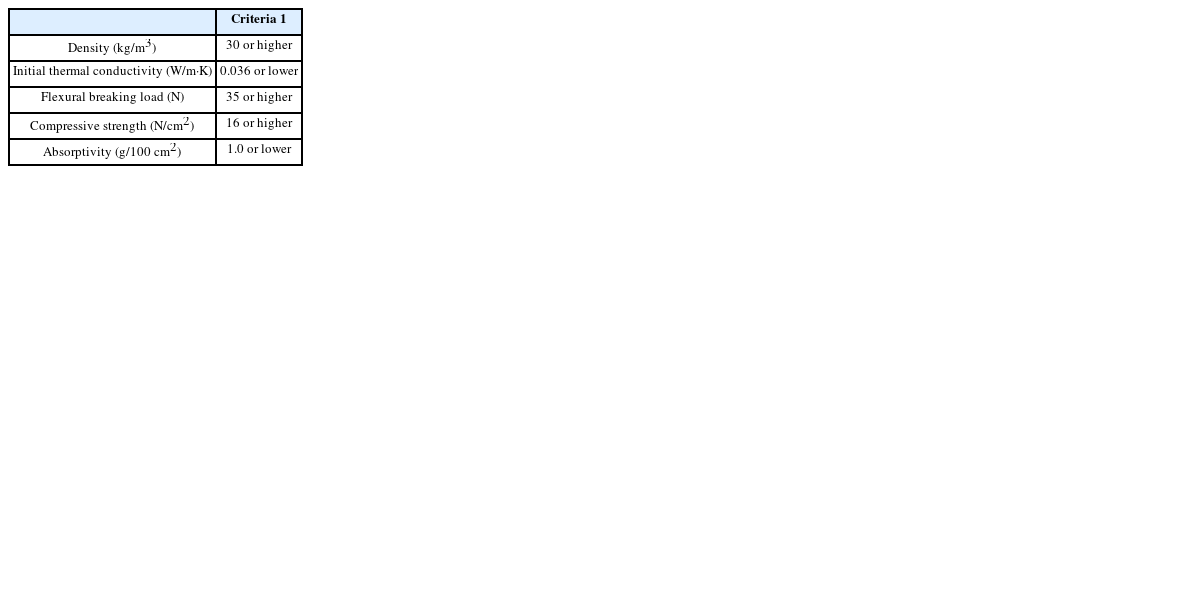 거푸집 재료는 EPS 단열재이며 종류는 비드법 1종 1호의 단열판과 단열통을 사용하였다. 재료의 물성치는 한국 산업 규격 KSM 3808 (EPS 보온 자)에 따라
