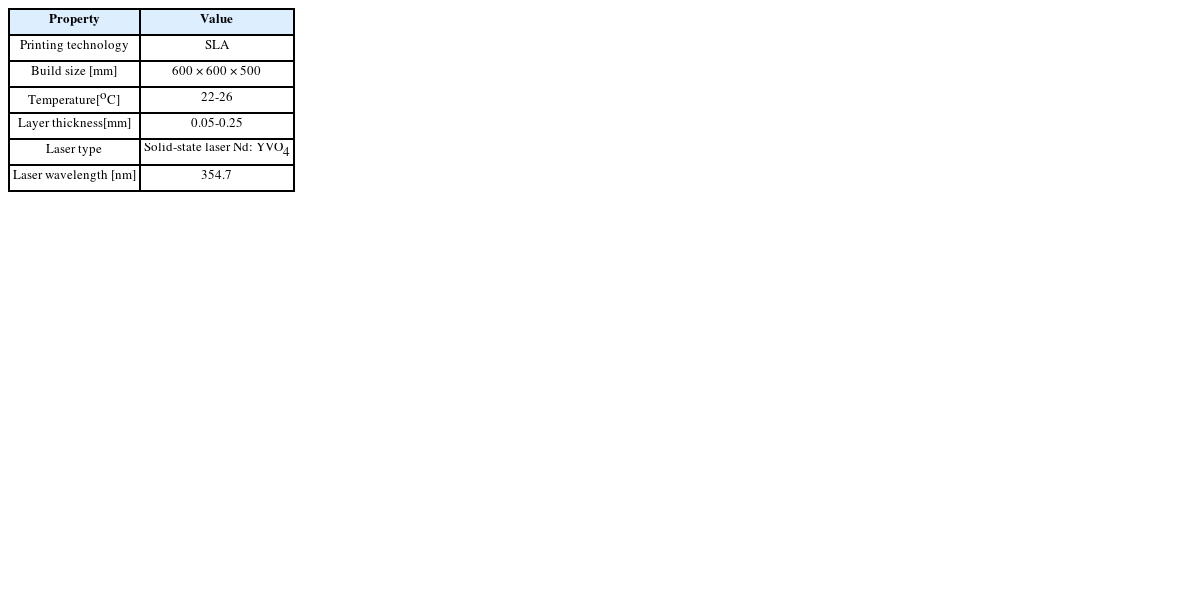 Table 1 Specifications of 3D printer