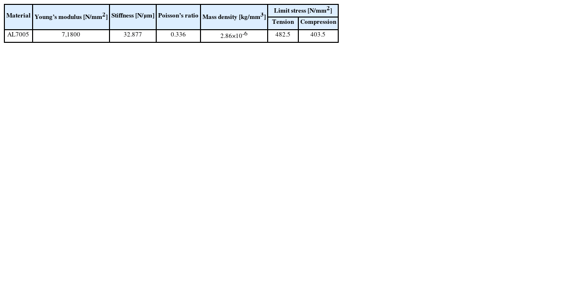Table 1은 Flexure Hinge 재질과 Stiffness를 표기하였다.