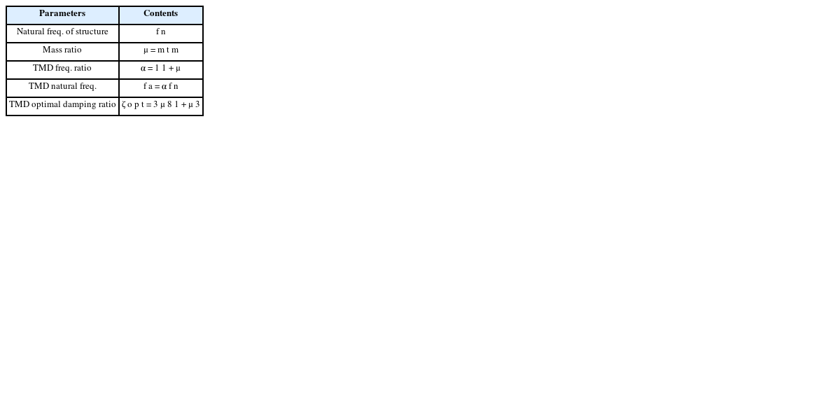 Table 1Optimal TMD parameters by Den Hartog’s method