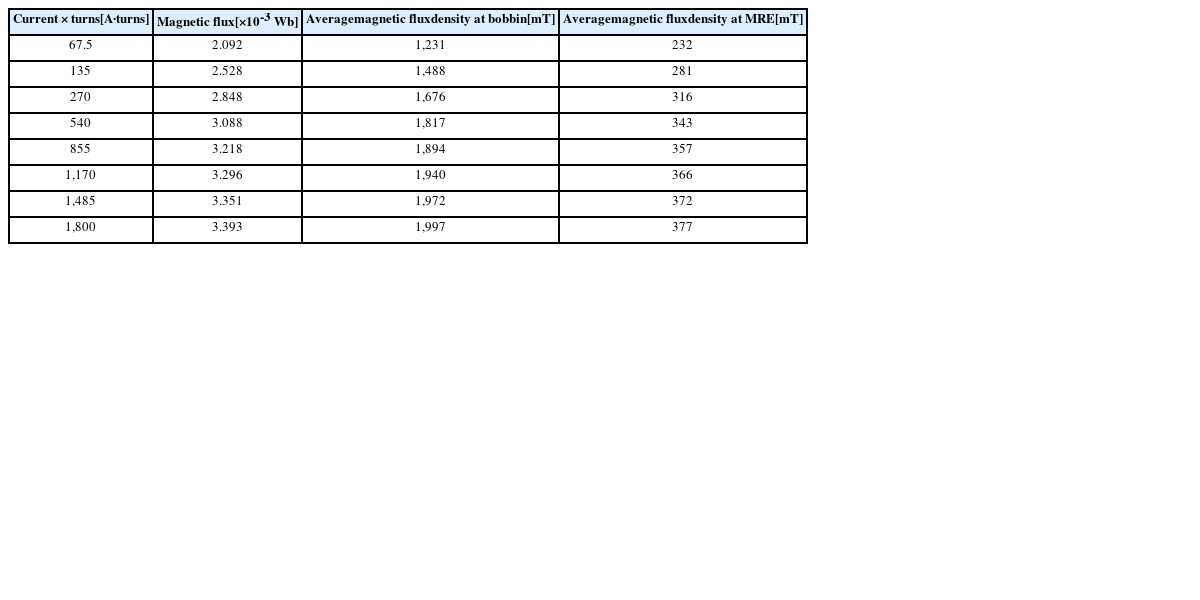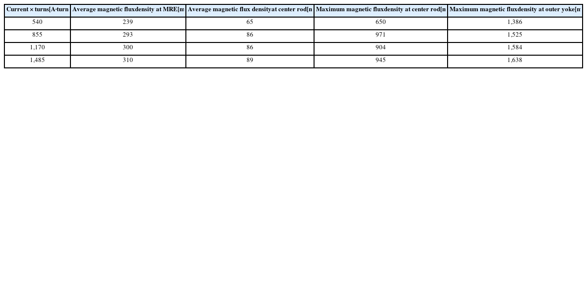 Table 2Calculation results of magnetic field with respect to current and number of coil turns of MRE
