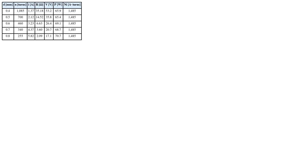 Table 2에서 전류 턴수는 코일에 흐르는 전류와 코일 턴수의 곱으로