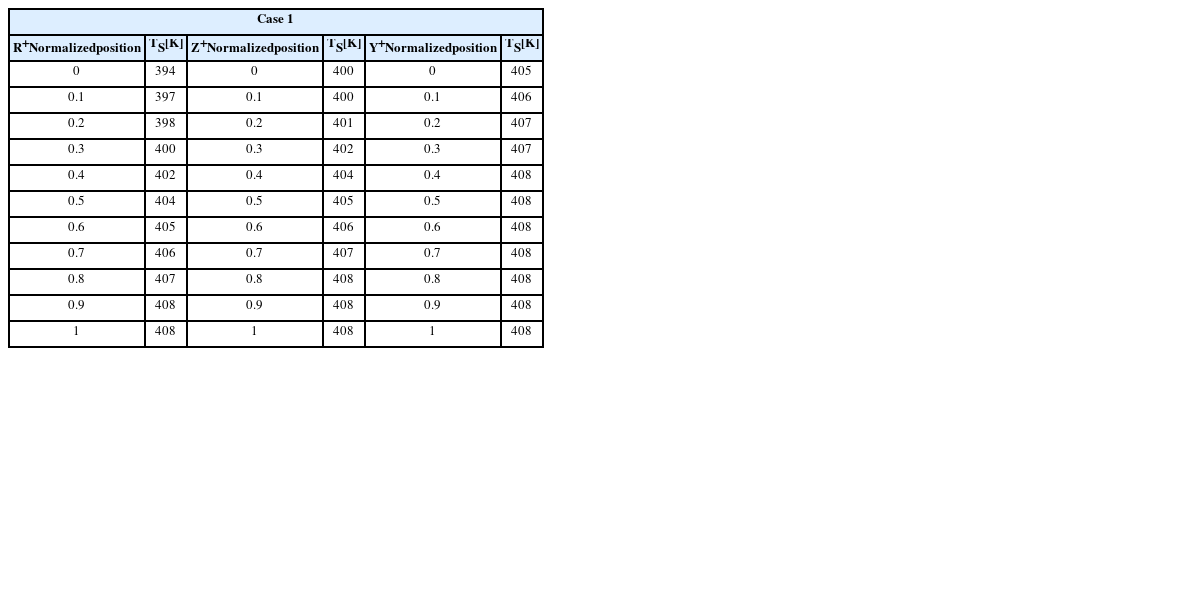 초기 조건으로 모터 하우징 외부 경계 조건은 단열 조건으로 설정하였으며 모터 내부 공극 사이의 공기의 온도는 상온을 기준으로 하여 298.15 K으로 설정하였고, 냉각 채널의 입구로 유입되는 냉각수의 온도는 차량이 실제 운행 중일 때와 유사한 조건으로 해석을 수행하기 위해 338.15 K으로 설정하였다. 모터에서 대중적으로 사용하고 있는 냉각수의 유량 6.5 LPM을 채택하여 질량 유량으로 변경하여 3가지 Cases 모두 동일하게 냉각 채널 입구에서의 질량 유량을 0.106 kg/s로 설정하였다. 출구는 모두 대기압으로 가정하여 계기 압력 0 Pa을 부여하였다. 전기자동차 모터 내부의 코일에 일정 열유속 조건을 열 경계 조건으로 사용하였다. 코일의 발열량은 방열핀이 부착되지 않는 냉각 채널을 탑재한 모터에서 코일의 허용 최고온도를 발생시킨 발열량 1,000,000 [W/m