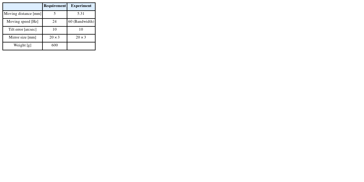 Table 2 Comparison of performances of the moving mirror by experiment and design requirements