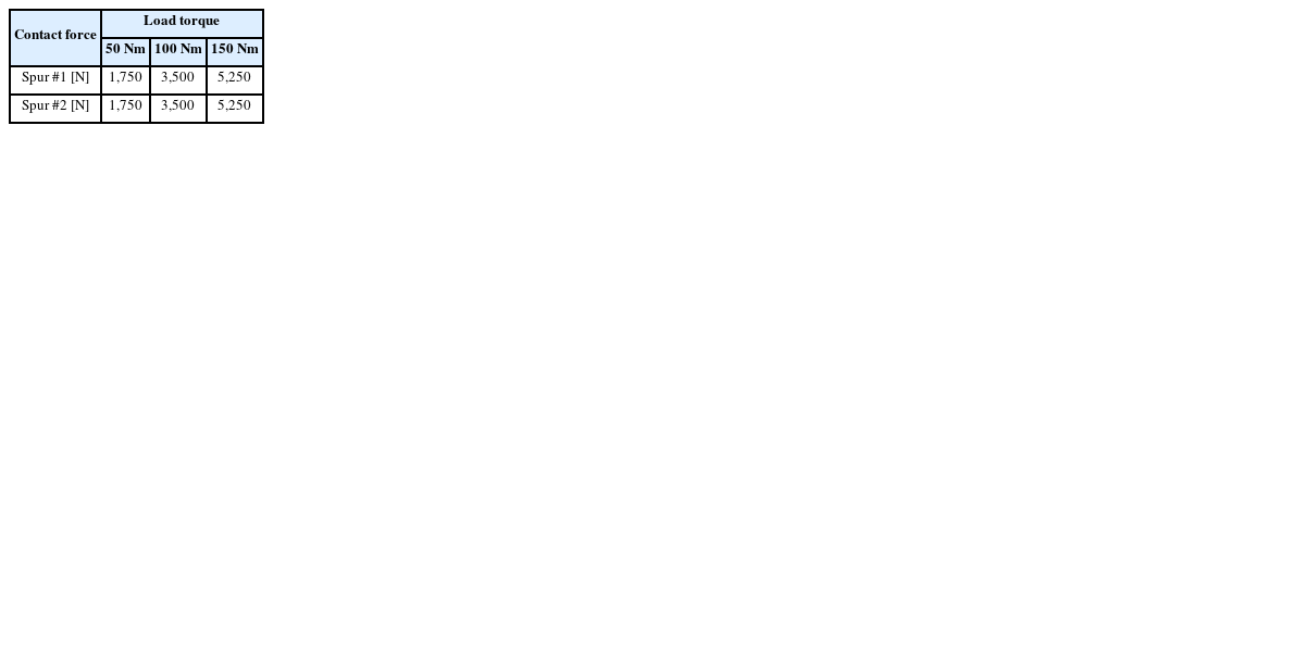 Table 5Contact force due to load torque