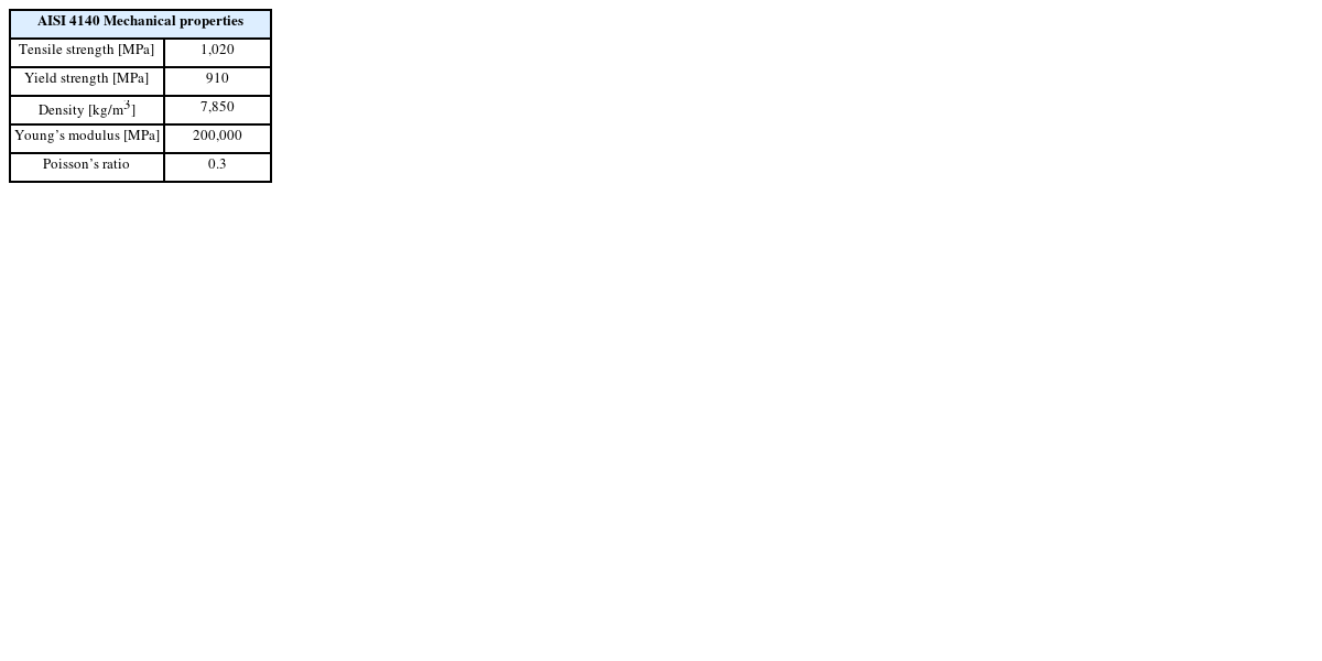 Table 1Mechanical properties of AISI 4140