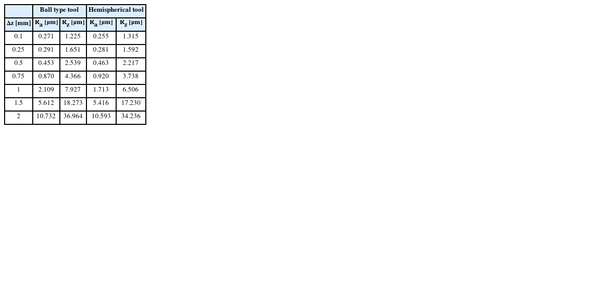 볼 타입 공구와 일반 반구형 공구의 표면 거칠기는 성형 깊이(Δz)가 1 mm보다 큰 경우 볼 타입 공구의 표면 거칠기가 미세하게 높은 값을 보인다. 재료에 소성변형이 발생하는 경우 결정립계에서 미소 변형이 누적되어 표면 거칠기가 증가한다. 볼 타입 공구를 사용하는 경우