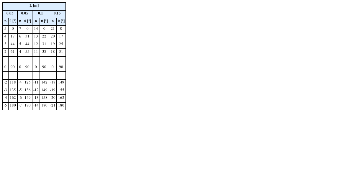Table 1은 마이크로폰 사이의 간격(L)에 따라 알고리즘이 표현할 수 있는 각도의 목록으로 0.03에서 0.15 m까지 넓어질 때 표현할 수 있는 각도가 각각 11, 15, 29, 43개로 증가하는 것을 알 수 있다.