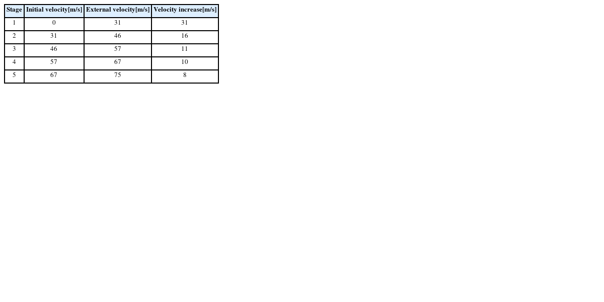 Table 11. The velocity measurement values by stage shown in the table are the average velocities recorded ten times considering the errors.
