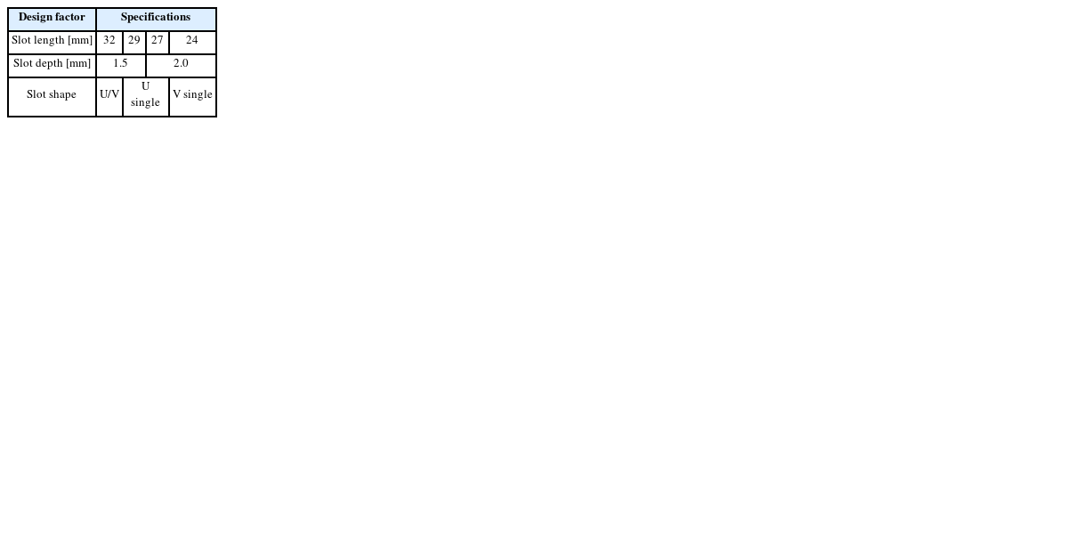 ③ Slot Shape: 홈 형상 및 홈 개수별 성능 비교 위한 3 Level 선정(U/V: U Shape, V Shape 복합 형상)
