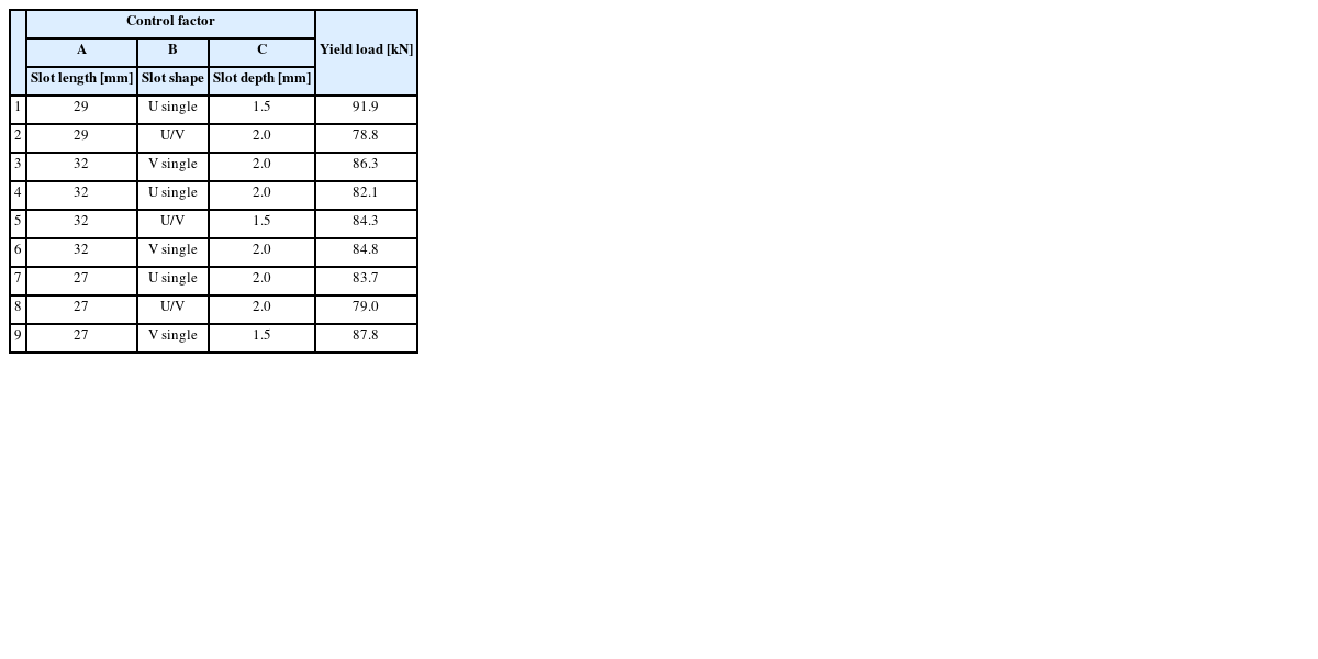 Table 3Orthogonal array table