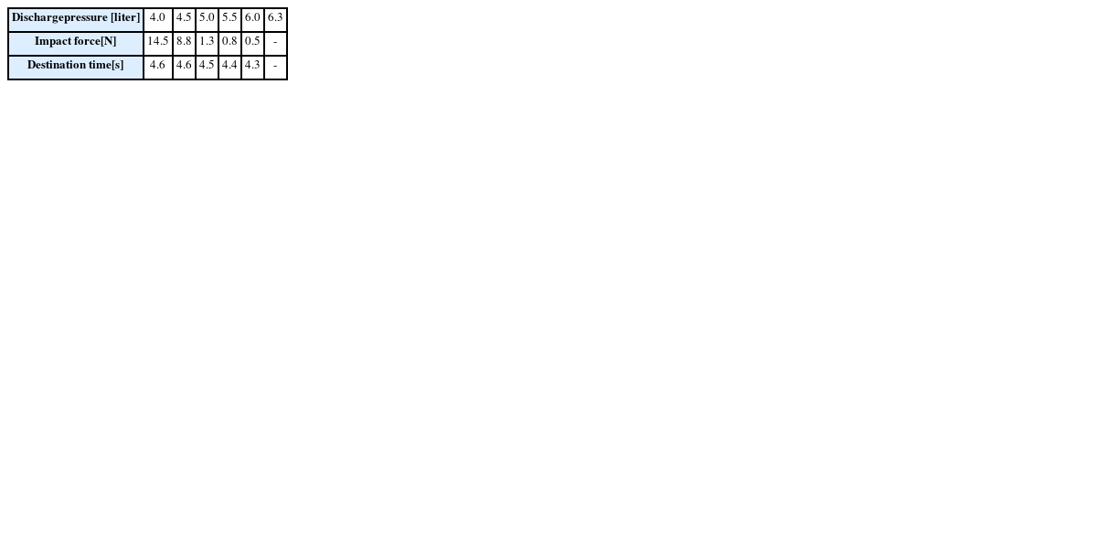 60 m 설치 기송관에 방출 시 최소로 요구되는 압력은 4.1 bar 및 압축 공기 182 L가 요구된다. 본 실험에서는 최소 요구 방출 압력 변화를 두어 순간 속도를 측정하였으며, 역압 발생 시의 효과를