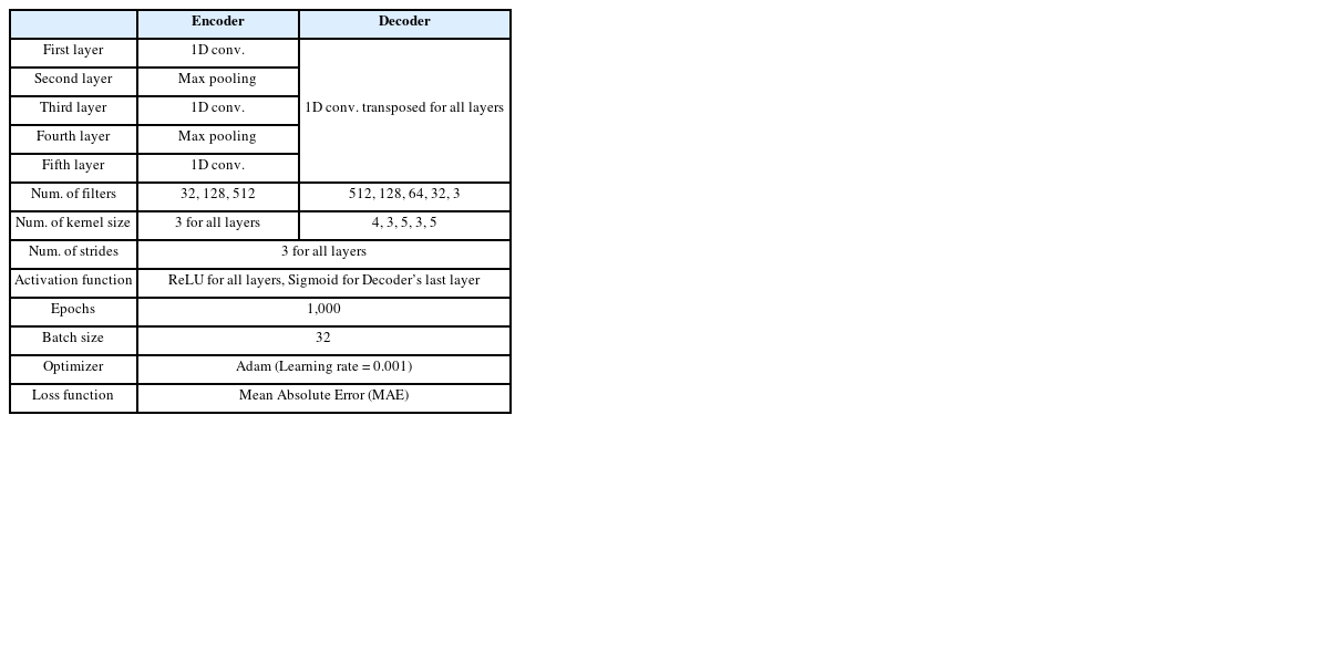 Table 3Architecture and hyperparameters of the Auto-encoder
