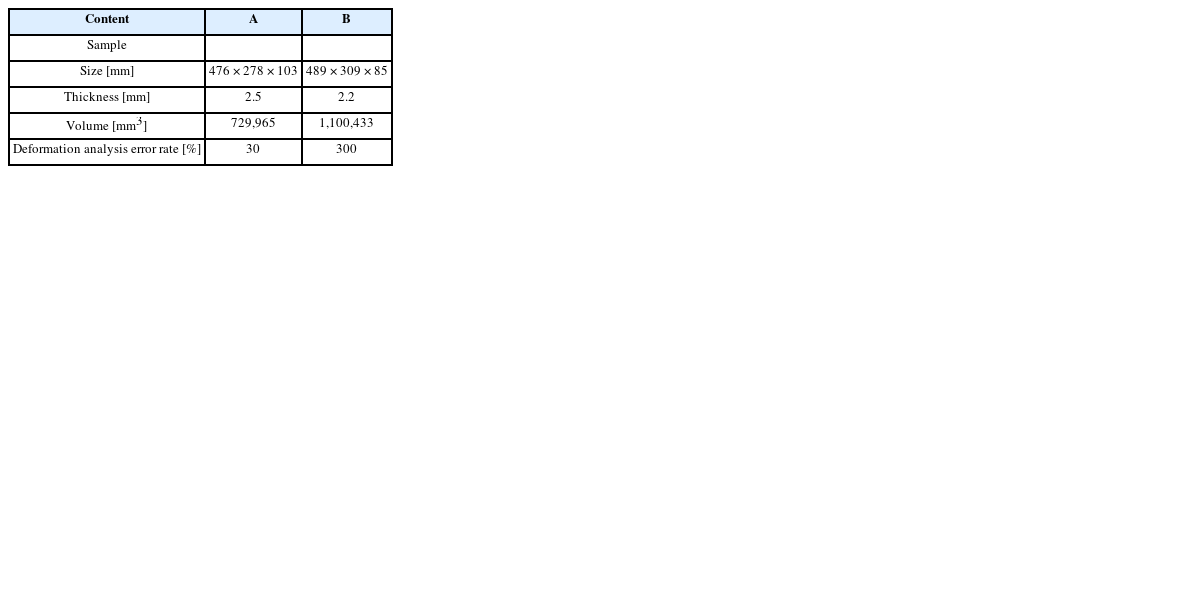 또한 섬유 강화 고분자 복합재료의 사출성형 시 기하학적 형상에 따른 고온 크립 특성을 고찰하고자 동일 기능의 제품 중 변형 해석 값과 제품 이형 후 실제 변형 결과 값의 오차가 약 30%인 Sample “A”와 약 300% 수준인 Sample “B”에 대해 기하학적 형상에 따른 평균 섬유 배향 텐서와 잔류응력 값을 비교 평가하고자 한다.