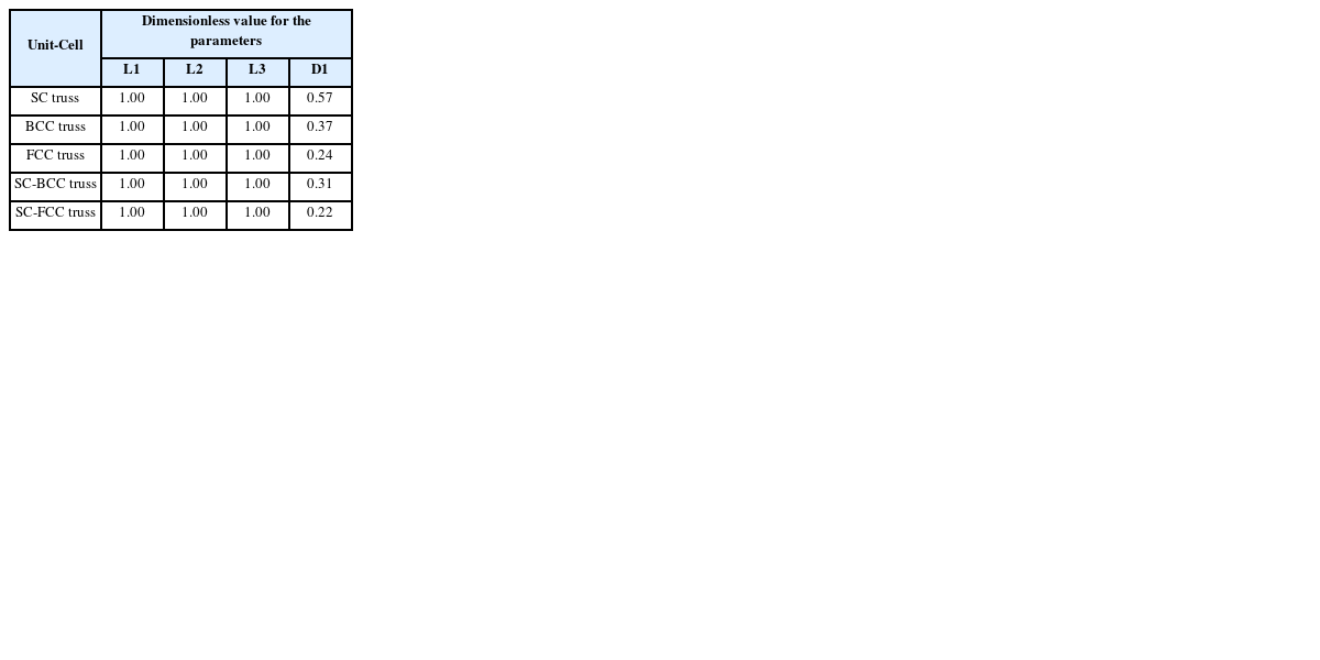 2]. Several lattice cell compositions have been discovered in the past few decades and the most widely studied are the simple-cubic, body-centered cubic (BCC), face-centered cubic (FCC), and their combination such as the simple-cubic body-centered and simple-cubic faced-centered structures, in which their mechanical properties has been investigated