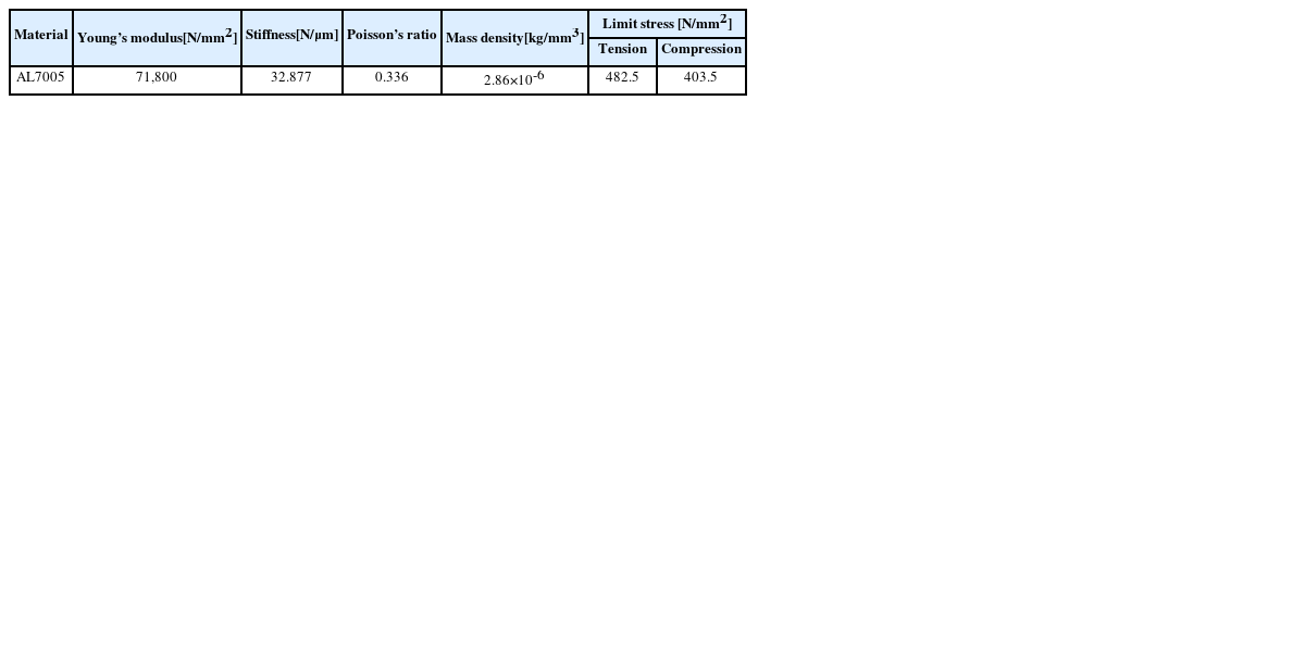 Table 1은 Flexure Hinge 재질과 Stiffness를 표기하였다[