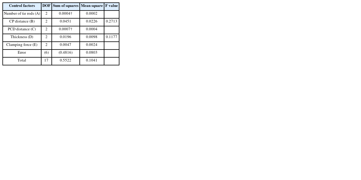 먼저 다구치 방법을 적용하여 전기 화학적 수소 압축기(Electrochemical Hydrogen Compressor)의 엔드플레이트 설계 및 유효성 평가를 수행하였다. 엔드플레이트의 형상 설계 인자는