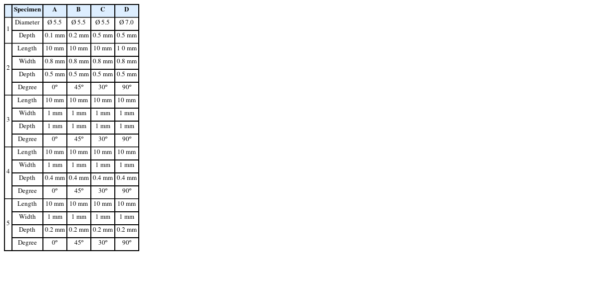 Table 2Dimension of specimen with artificial defects