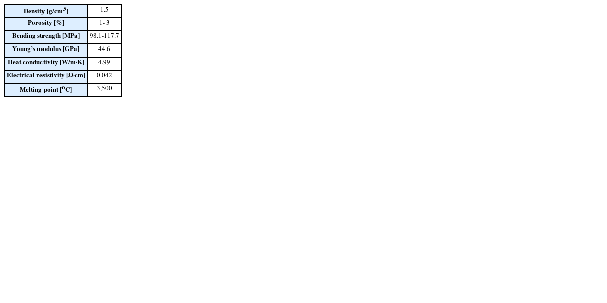15]. The GC substrate was mounted on the EDM system. Material properties of GC used in this study are shown in
