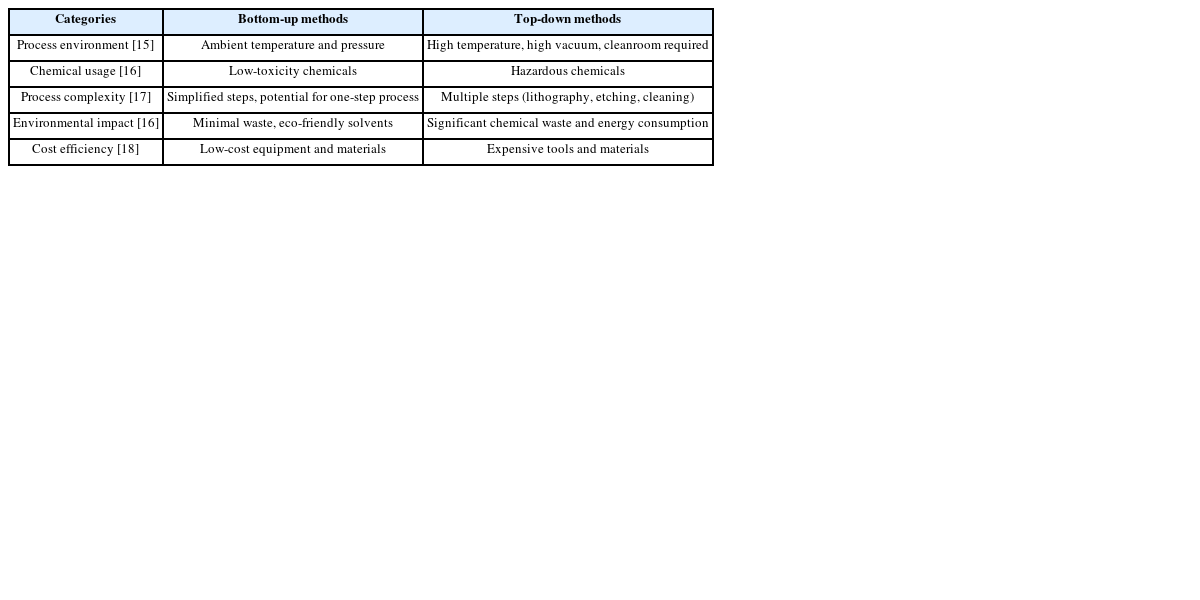 Table 1 Comparison between bottom-up and top-down fabrication methods