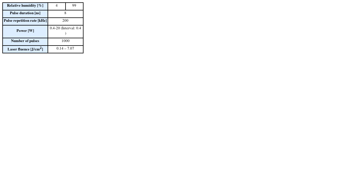 Table 2Laser ablation threshold depending on relative humidity