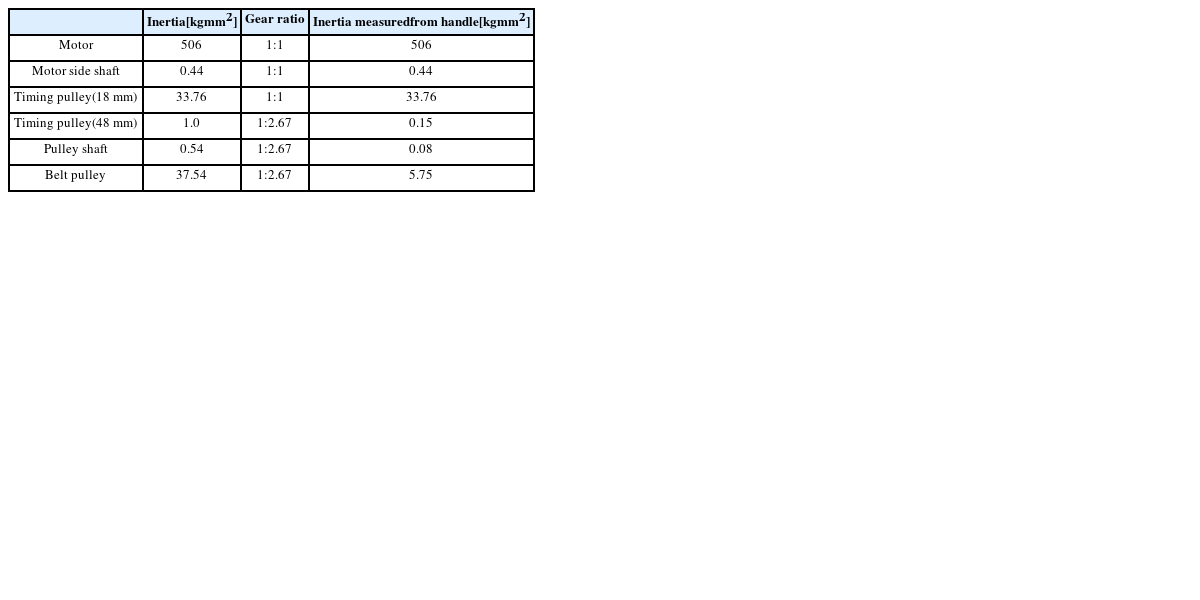 회전 관성은 기어비의 제곱에 비례한다는 점을 확인할 수 있다. 그러므로 기어비를 낮춰 손잡이에서 측정되는 모터의 회전 관성을 줄인 결과, 회전 관성을 3304.62에서 546.18 kgmm