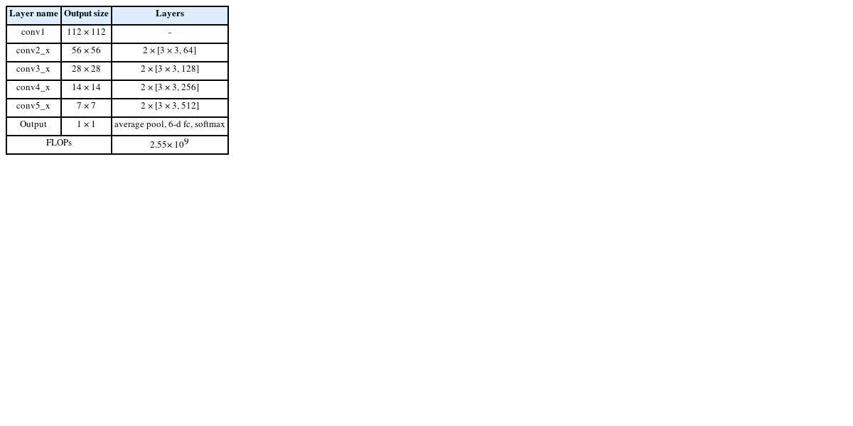 제안하는 방법은 멜-스펙토그램 이미지를 분류할 수 있도록 CNN을 훈련시켜 파이프라인에 발생한 누출 여부 및 누출 강도를 탐지한다. 이미지 분류를 위한 CNN 사용하는 경우 다음과 같은 장점이 있다. 1) 이미지 분류를 위해 프리-트레이닝(Pretraining)이 완료된 다양한 모델이 공개되어 있다. 2) 이미지 증강(Augmentation)을 위한 다양한 기법을 활용하는 것이 가능하 다. 제안하는 방법에서는 공개된 모델 중 ResNet18을 바탕으로 CNN을 구성하였다.