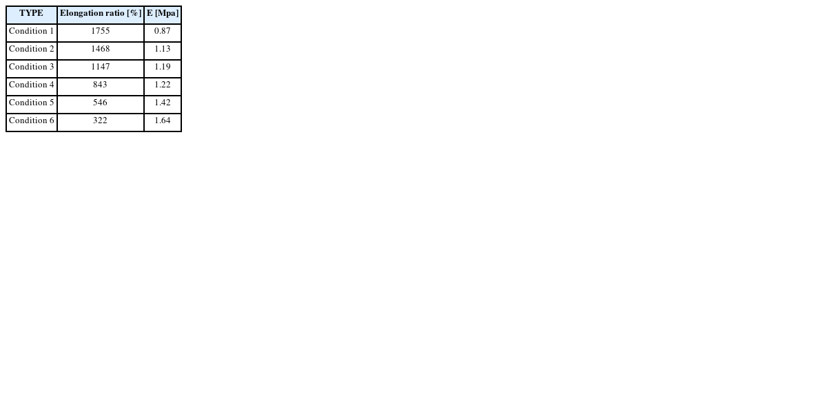 특히 Condition 6의 경우 연신율이 약 400% 이하로 측정되며 풍선 성형에 실패하였고 이를 통해 풍선 성형이 가능한 고분자 튜브의 연신율 하한선은 약 400% 이상임을 확인할 수 있었다.