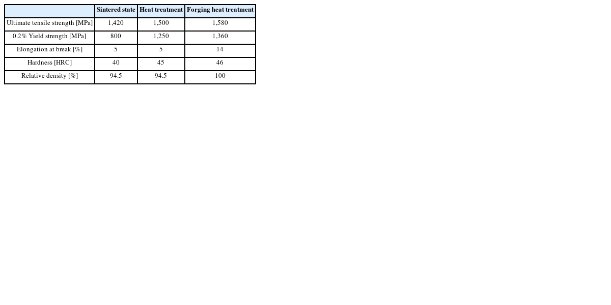 Table 1은 Metal X System적층 장비를 이용한 H13 공구강 소재의 물리적 특성으로 소결 상태, 열처리, 단조 열처리에 따른 물리적 특성 값들을 보여준다. 이를 통해 H13 공구강은 단단하고 고온에서도 특성을 유지하며, 1,500 MPa 극한 인장 강도 및 45 HRC 경도까지 열처리 작업이 가능한 것을 알 수 있다. H13 공구강은 우수한 내마모성 및 강도를 가지지만 기존 가공 공정을 통한 제작에서는 절삭공구의 내부 유로 및 복잡한 형상 등을 제작하는 것이 힘들다. 하지만 적층 제조 기술을 활용하면 제작이 원활하며, 소재 특성 및 품질을 향상시킬 수 있다[