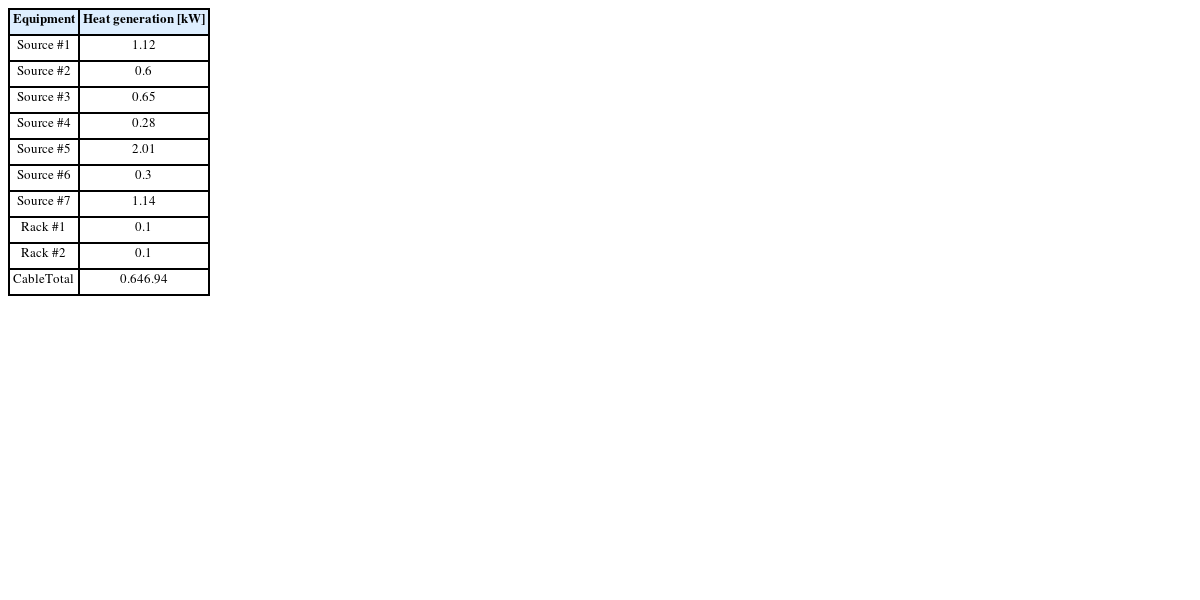 Table 7Equipment heat generation value